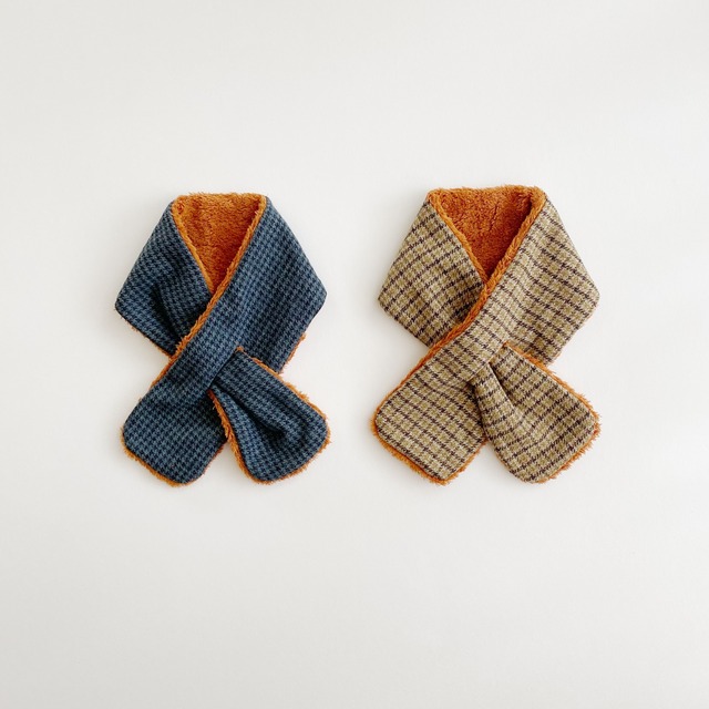 ネックウォーマー / 千鳥格子 コットンツイード & オーガニックボア / 子供用 キッズマフラー