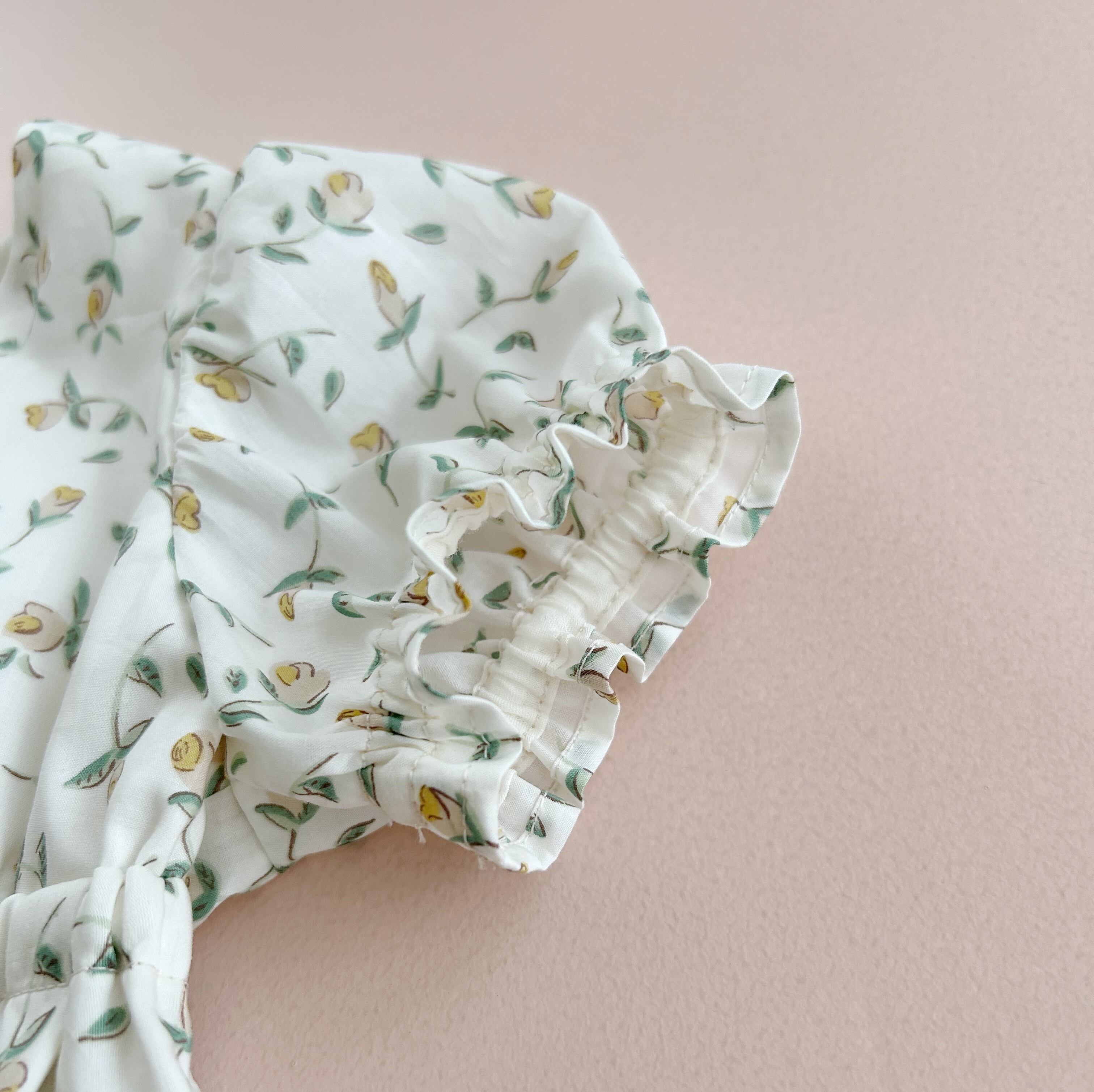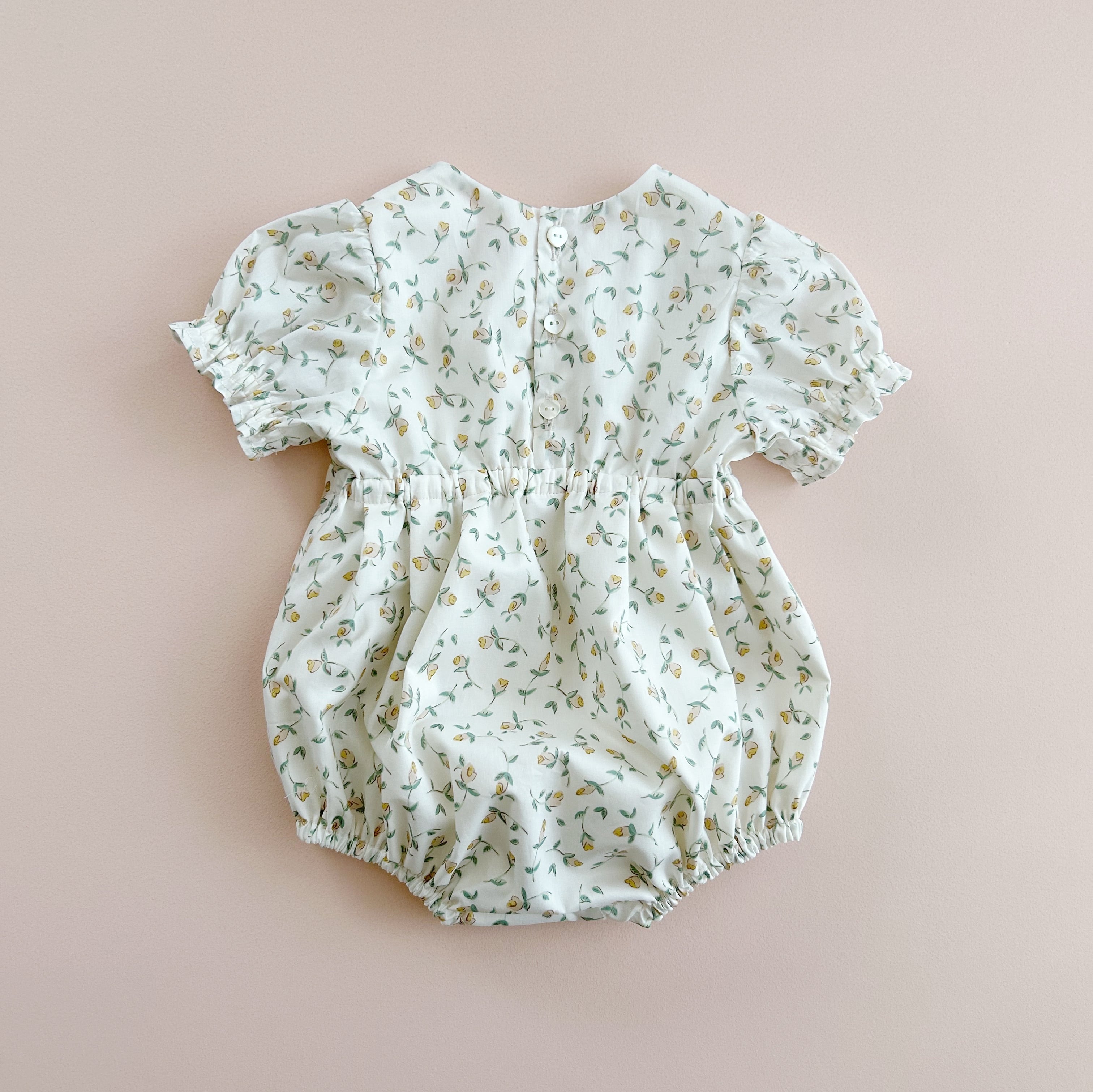 ウエストを少し絞った可愛いシルエットのロンパース。