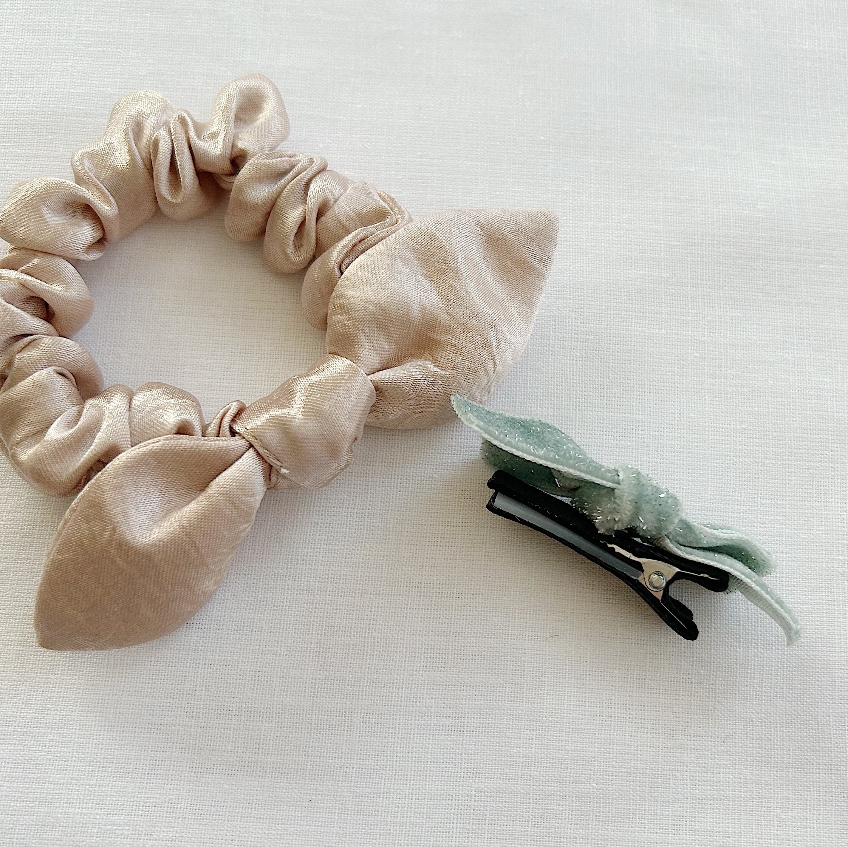 サテンシュシュとベロアリボンクリップのセット