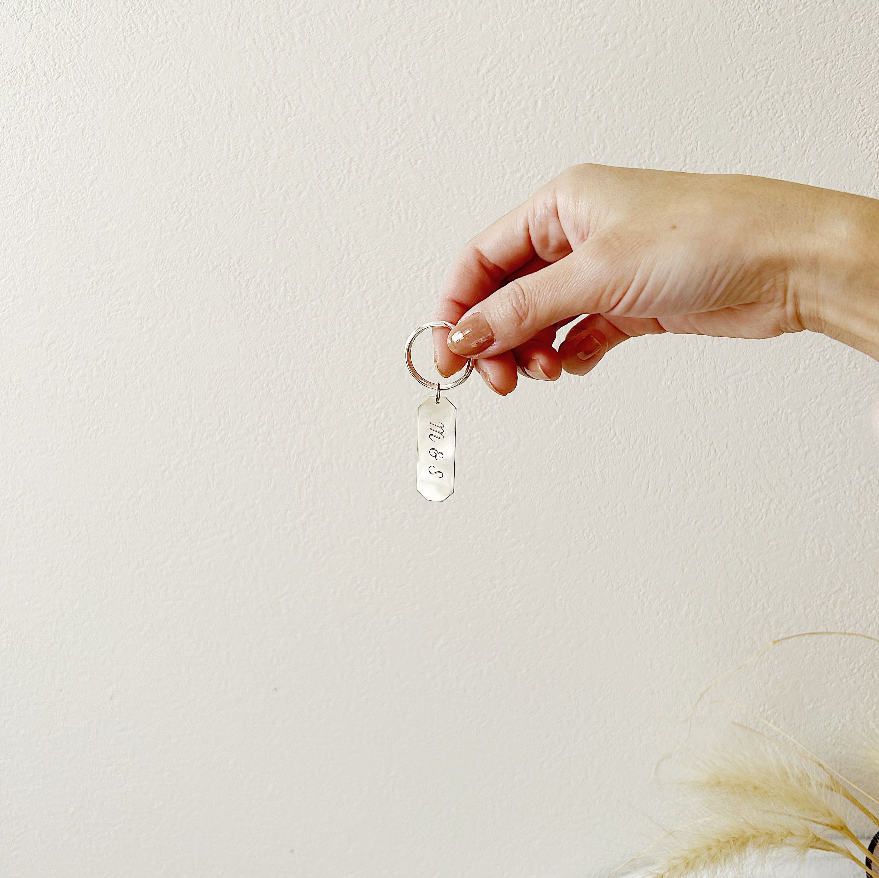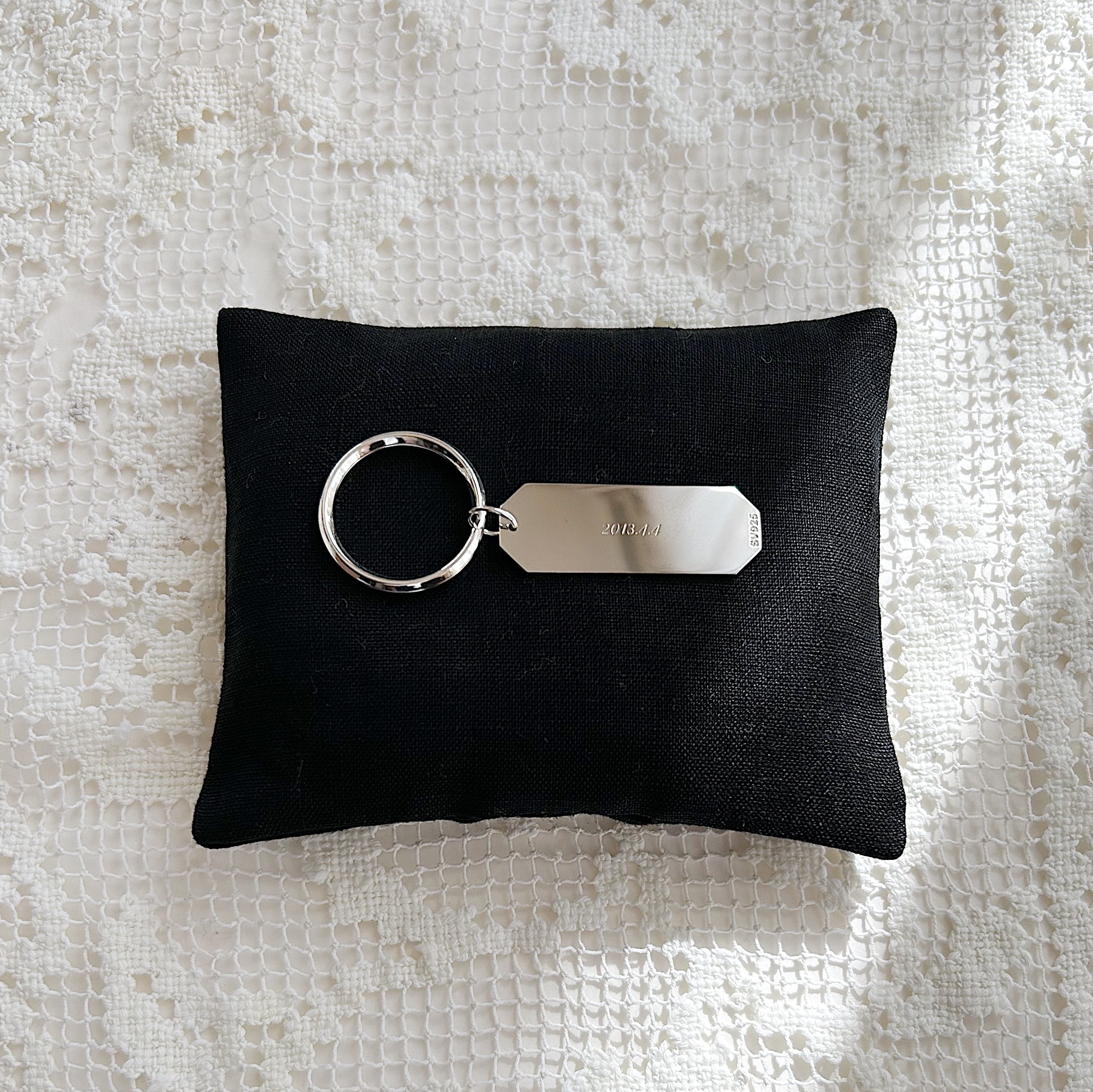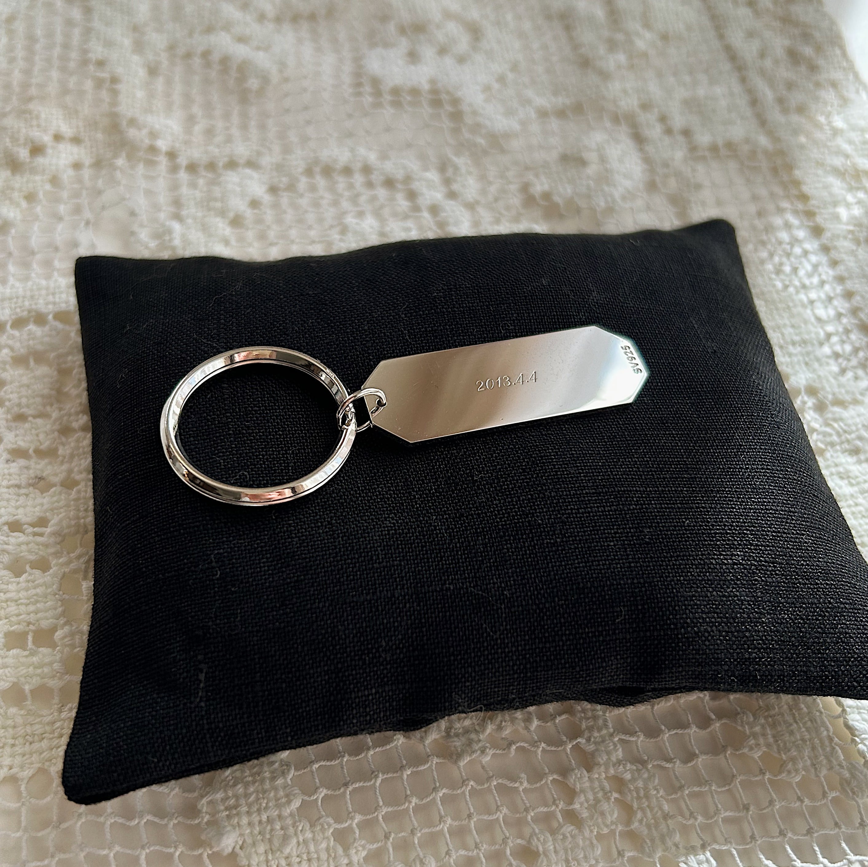 お好きな文字を両面に刻印できるシルバーキーホルダー