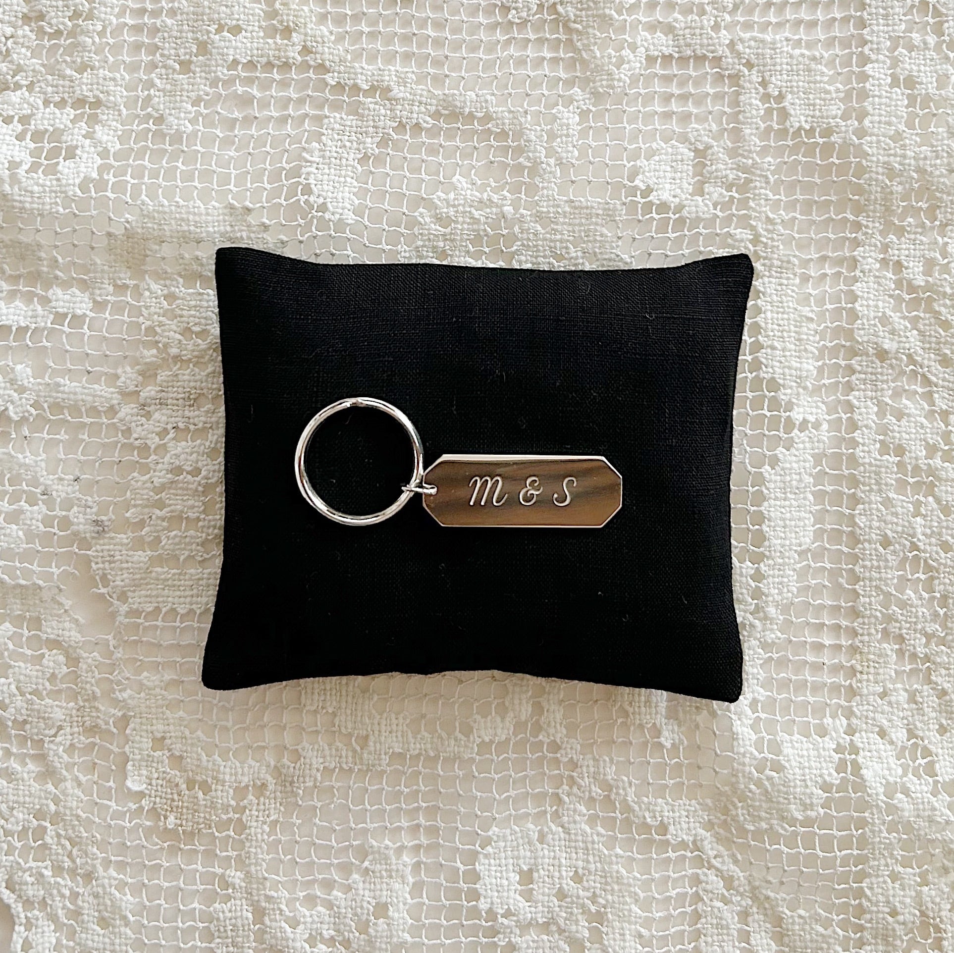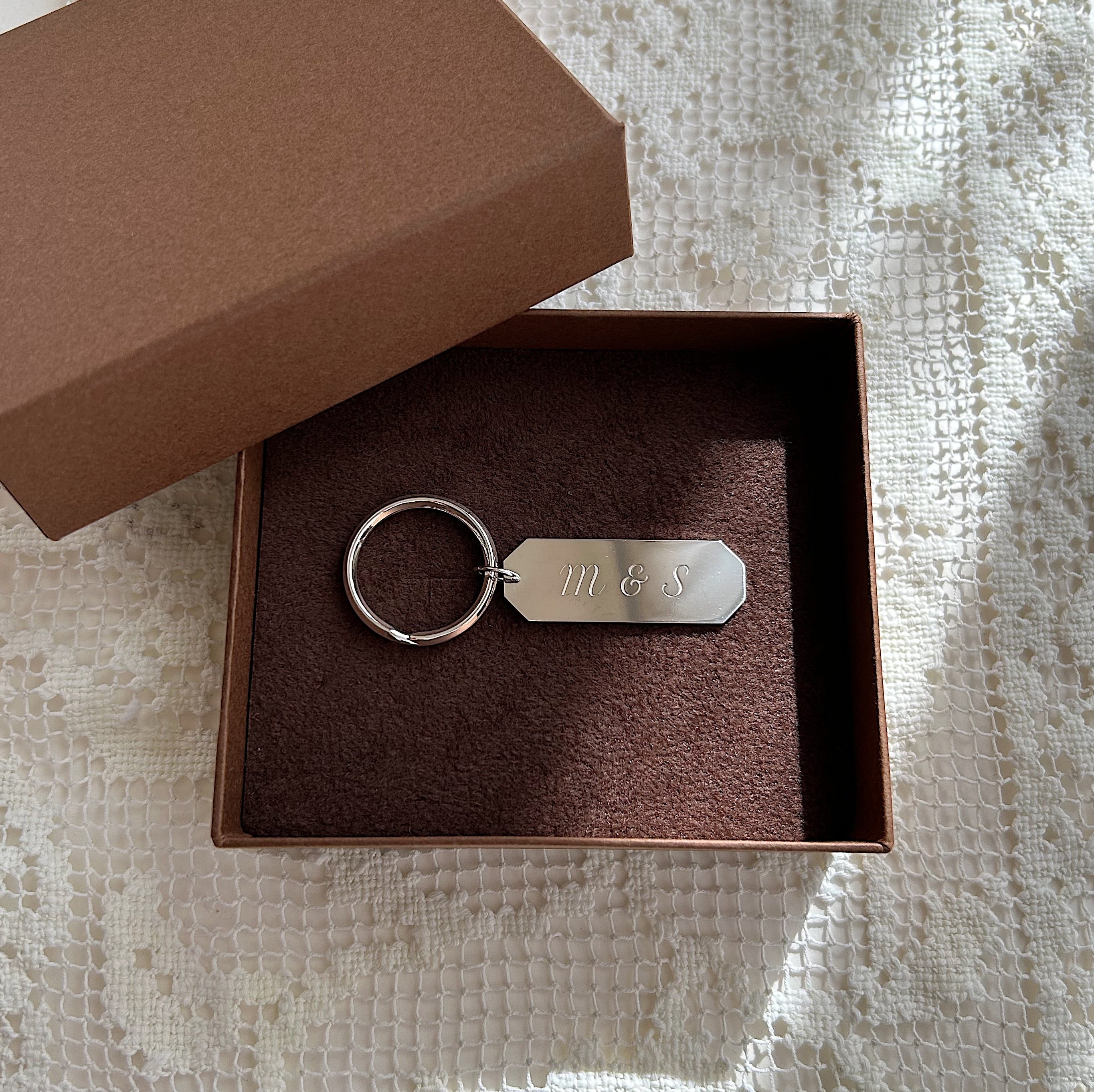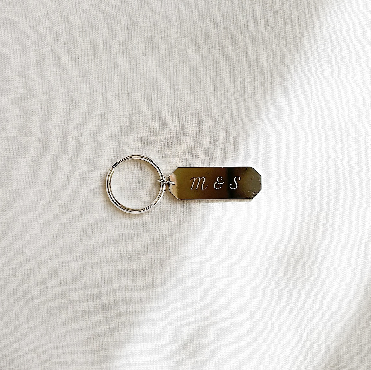 お好きな文字を両面に刻印できるシルバーキーホルダー