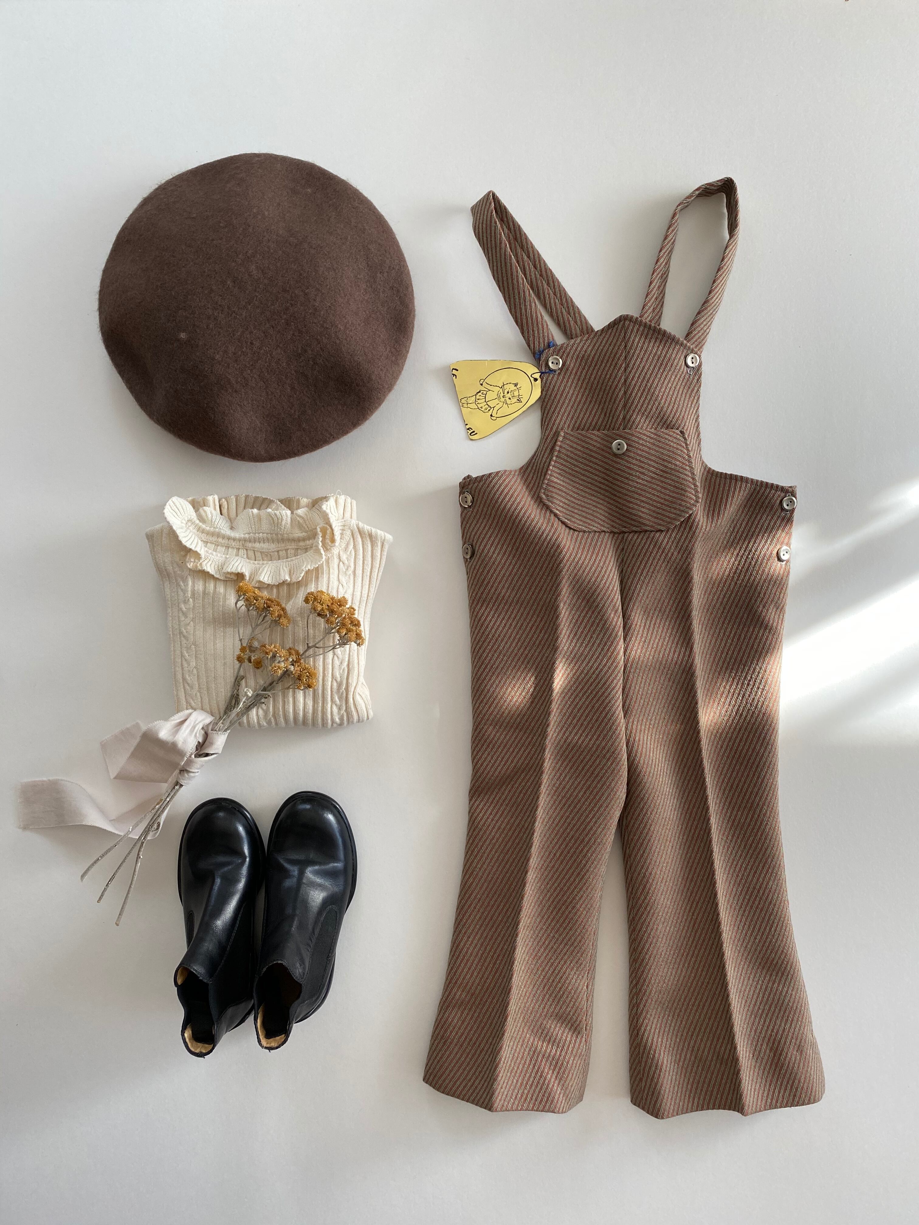 フレアーシルエットがおしゃれな、フランスヴィンテージの子供用オーバーオール。