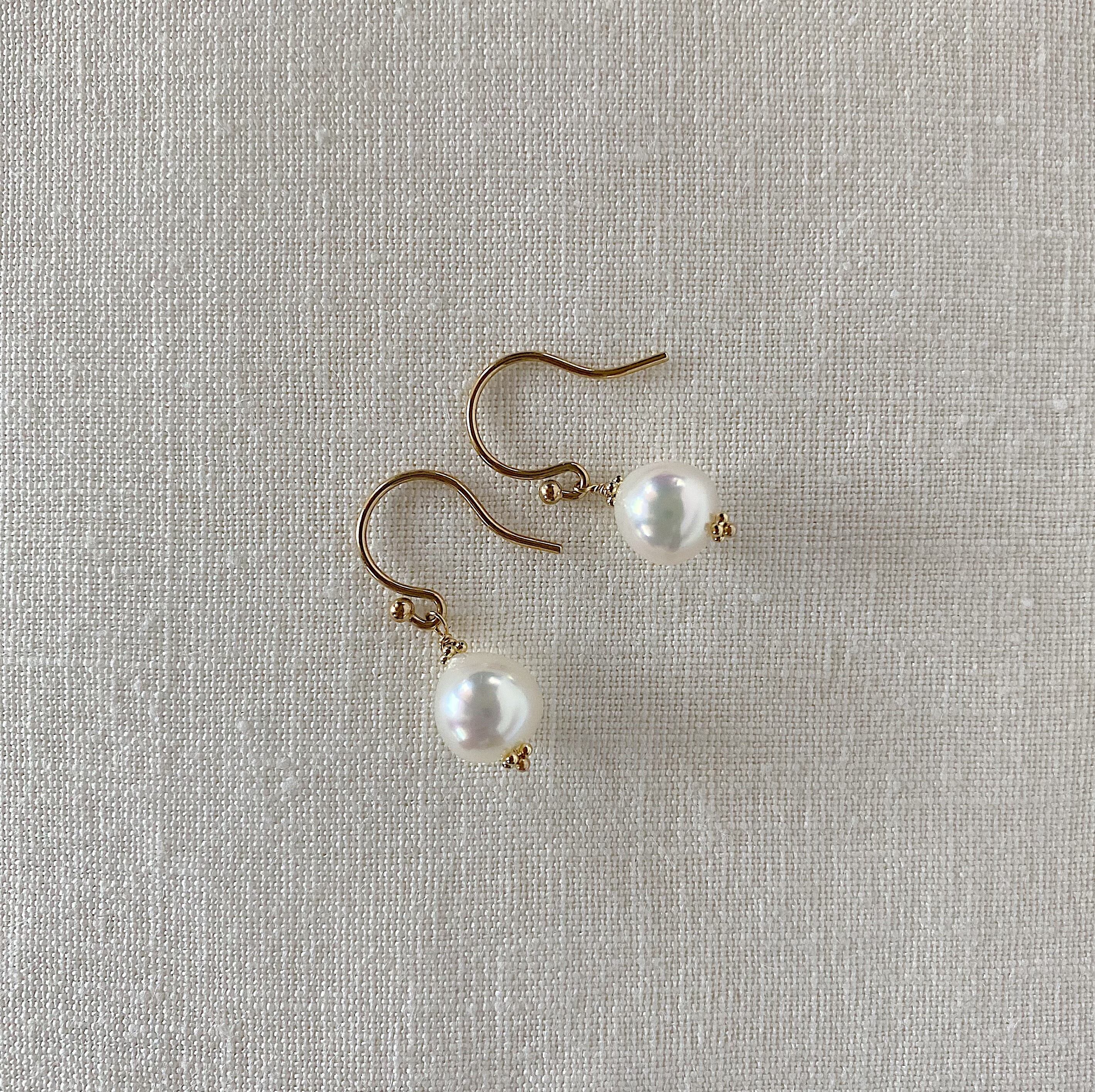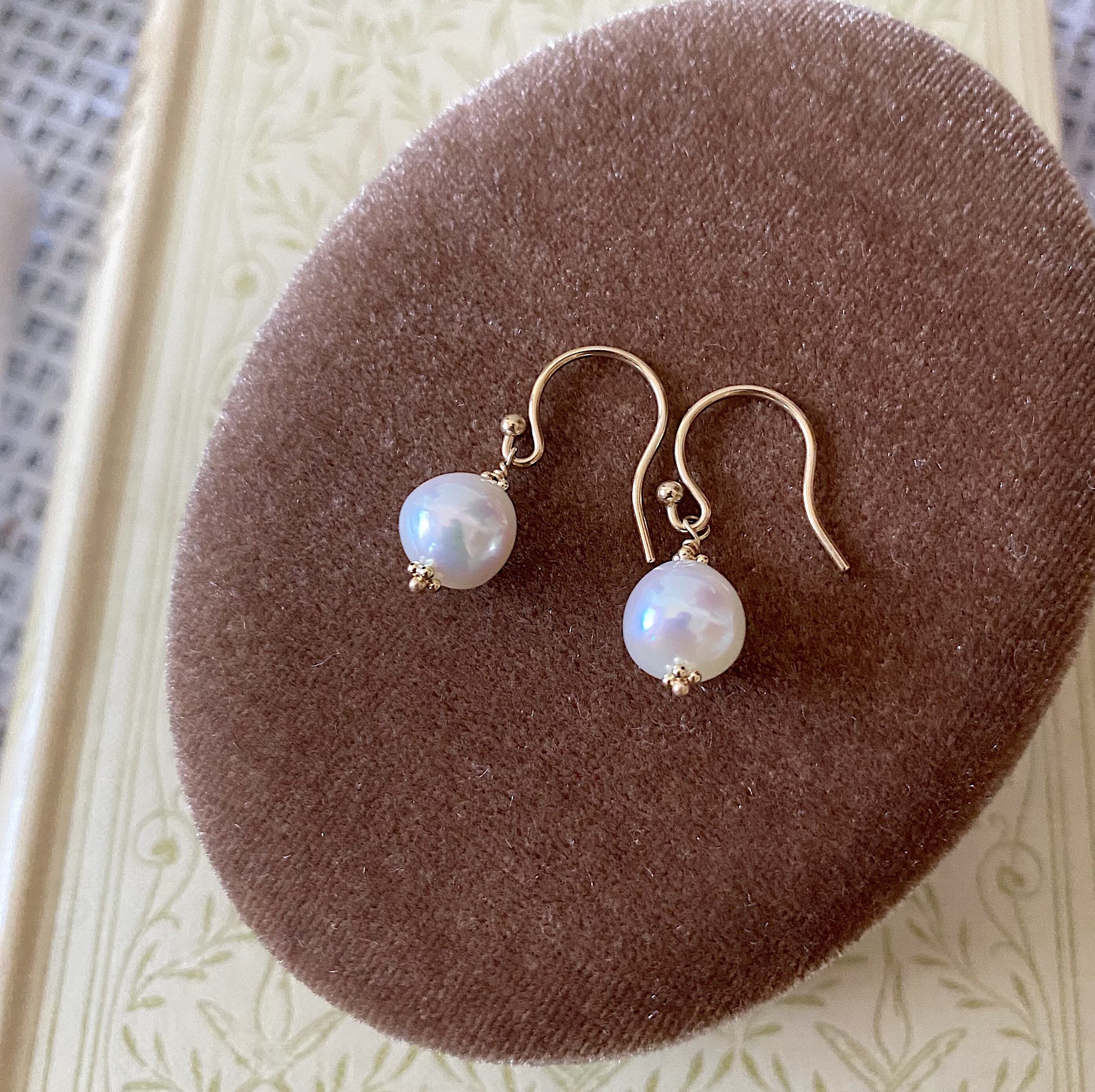 熊本県天草地域の美しい海で育てられた真珠でお作りした、フックタイプのピアス。