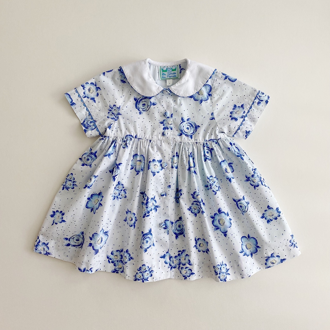 襟の刺繍やくるみボタンなど、細かい部分まで可愛さの詰まった一着です。
