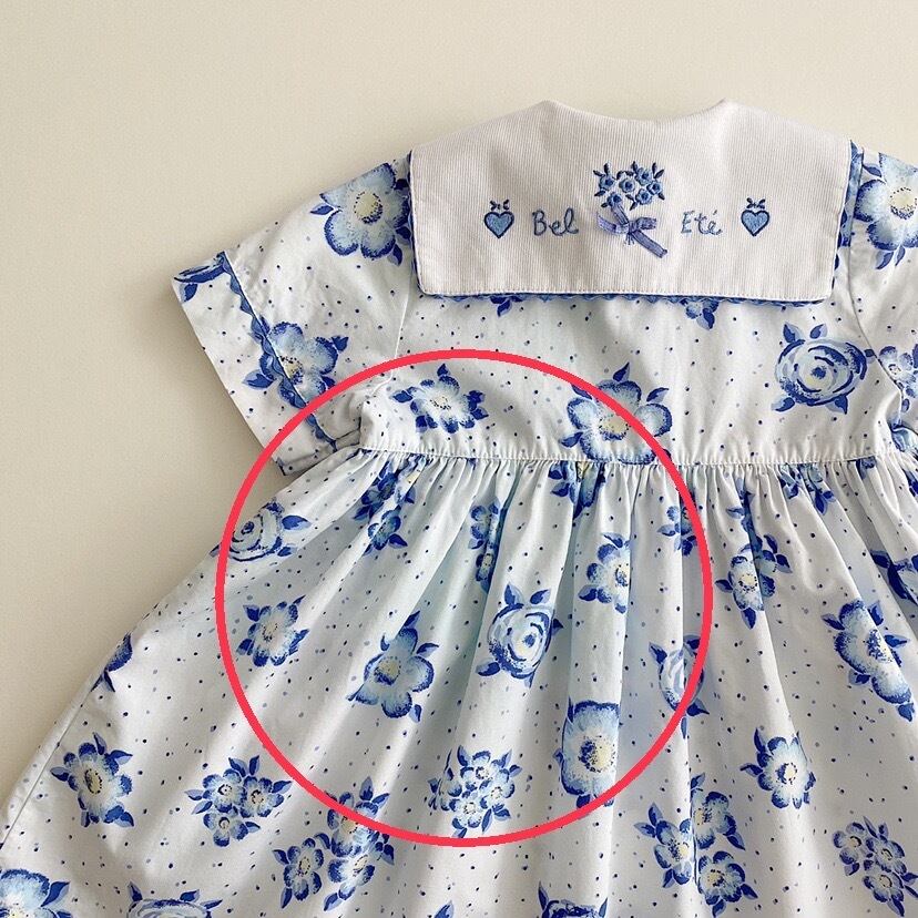 爽やかなブルーの花模様のセーラーカラーワンピース。