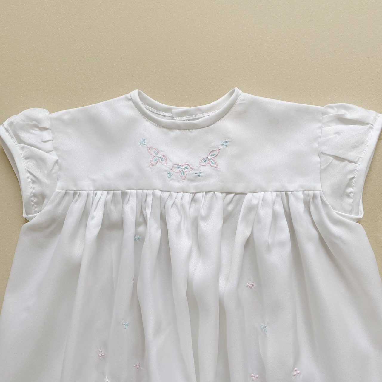 右側スカート部分の刺繍にごく薄いシミが1か所あります(画像8枚目)。