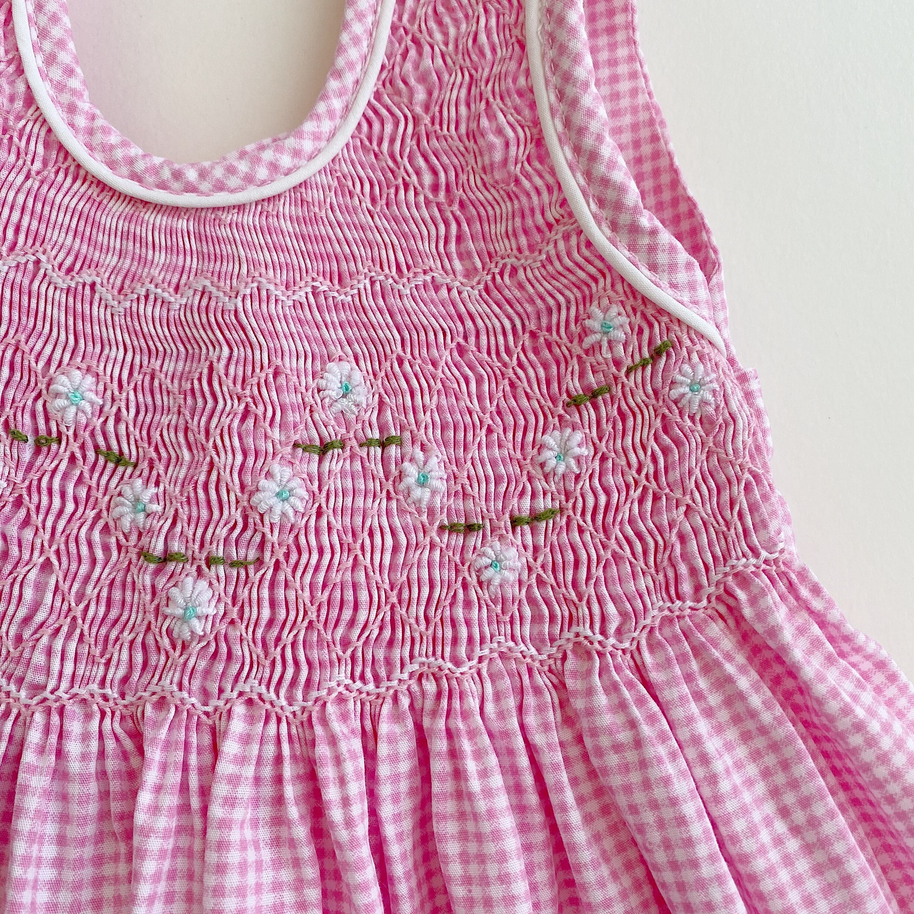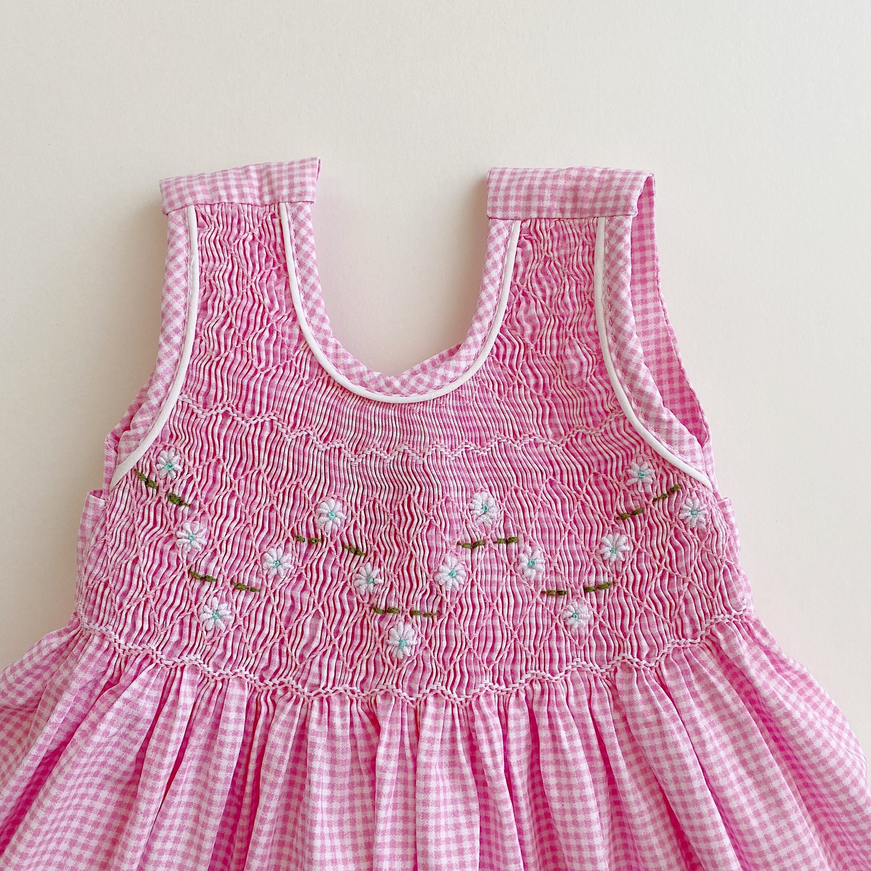 お花がリズミカルに並んだ、スモッキング刺繍ワンピース。