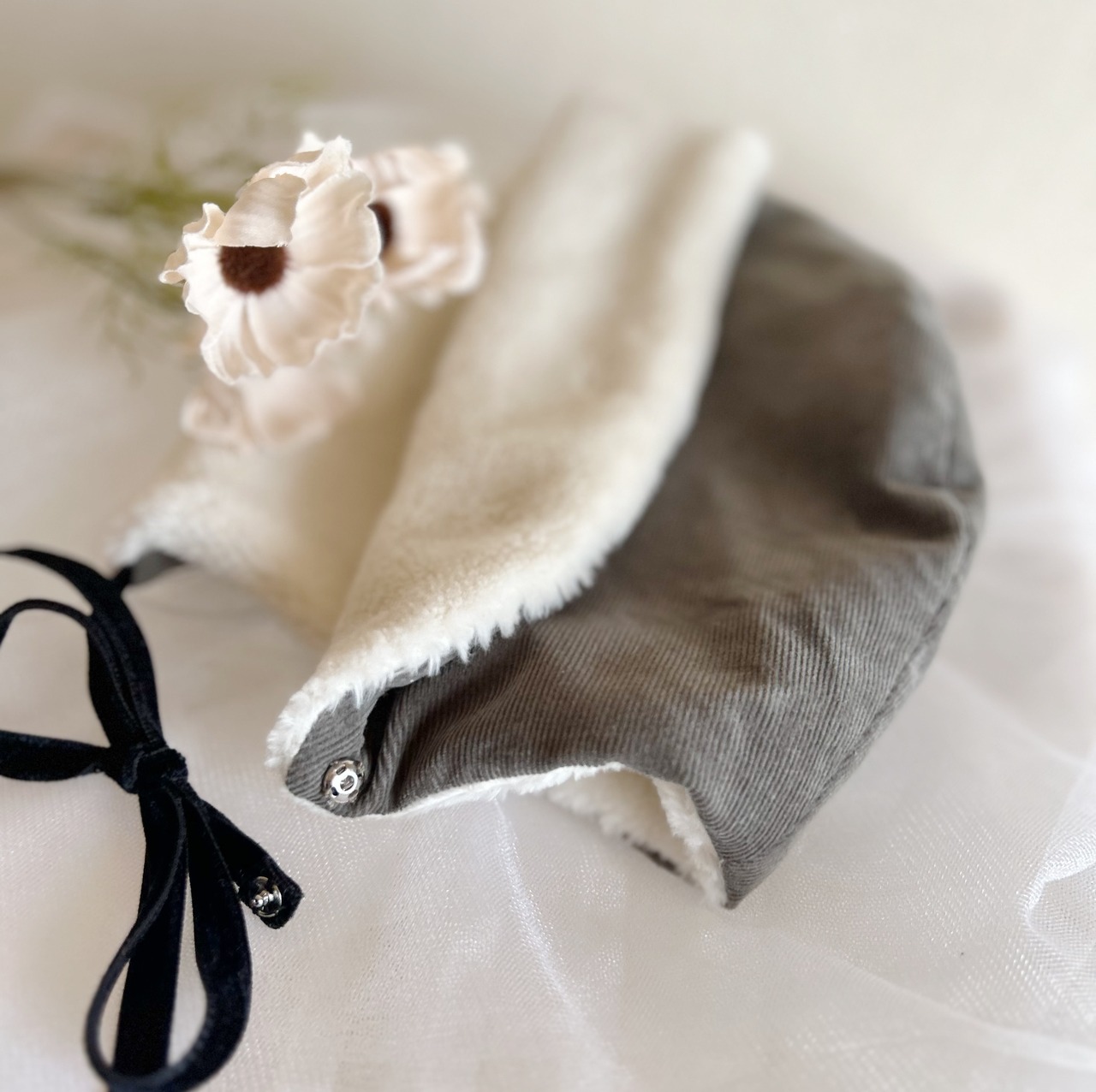 表地はコットンコーデュロイ、裏地はオーガニックコットン認証を受けたコットンボアを使用しています。