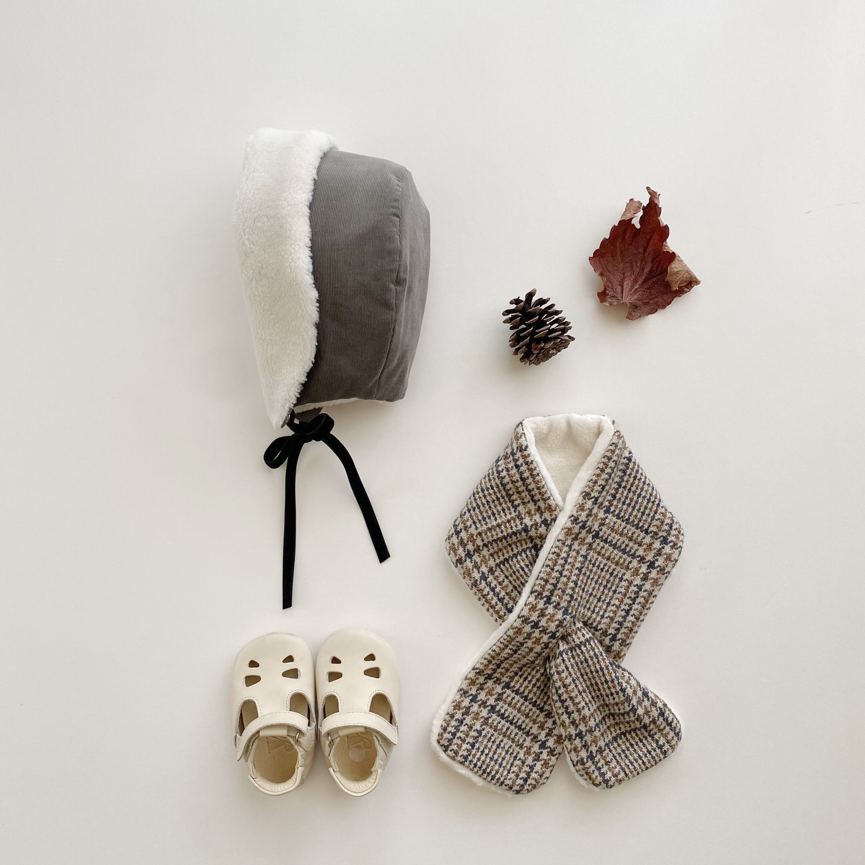 お子様の可愛いお顔をより際立たせてくれる、ボアの折り返しブリム。