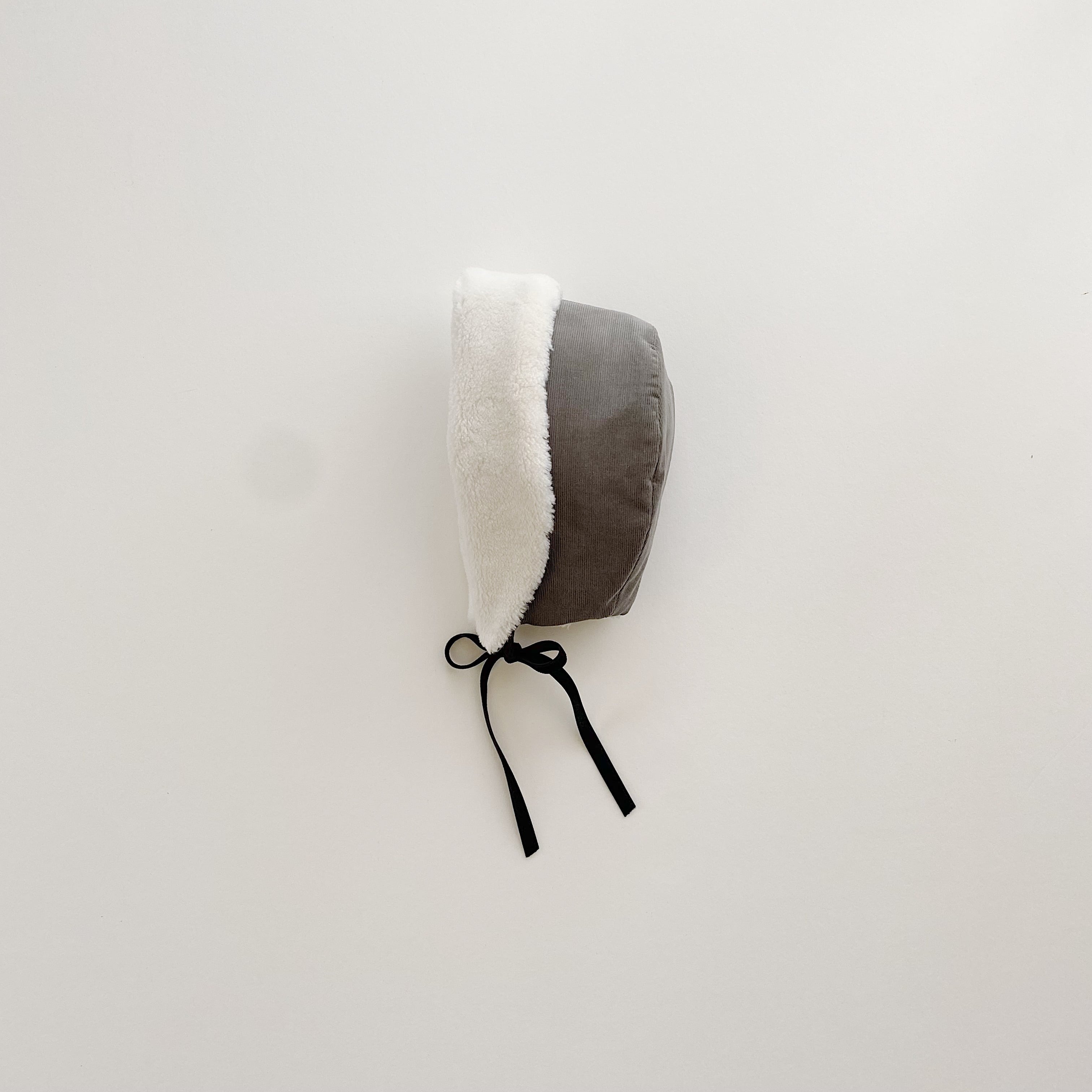 丸みのある形にリボンがアクセントのクラシカルなボンネット。