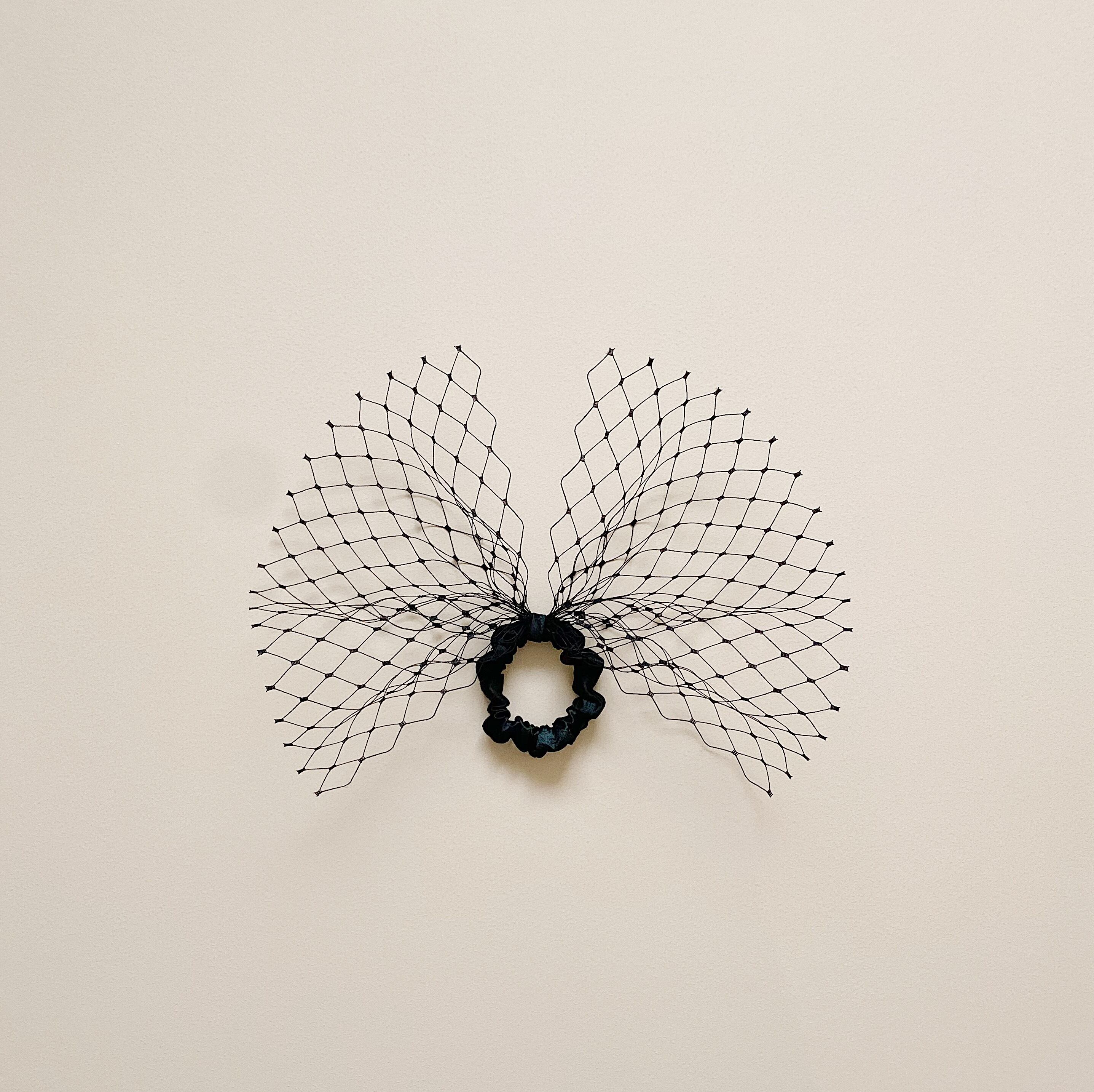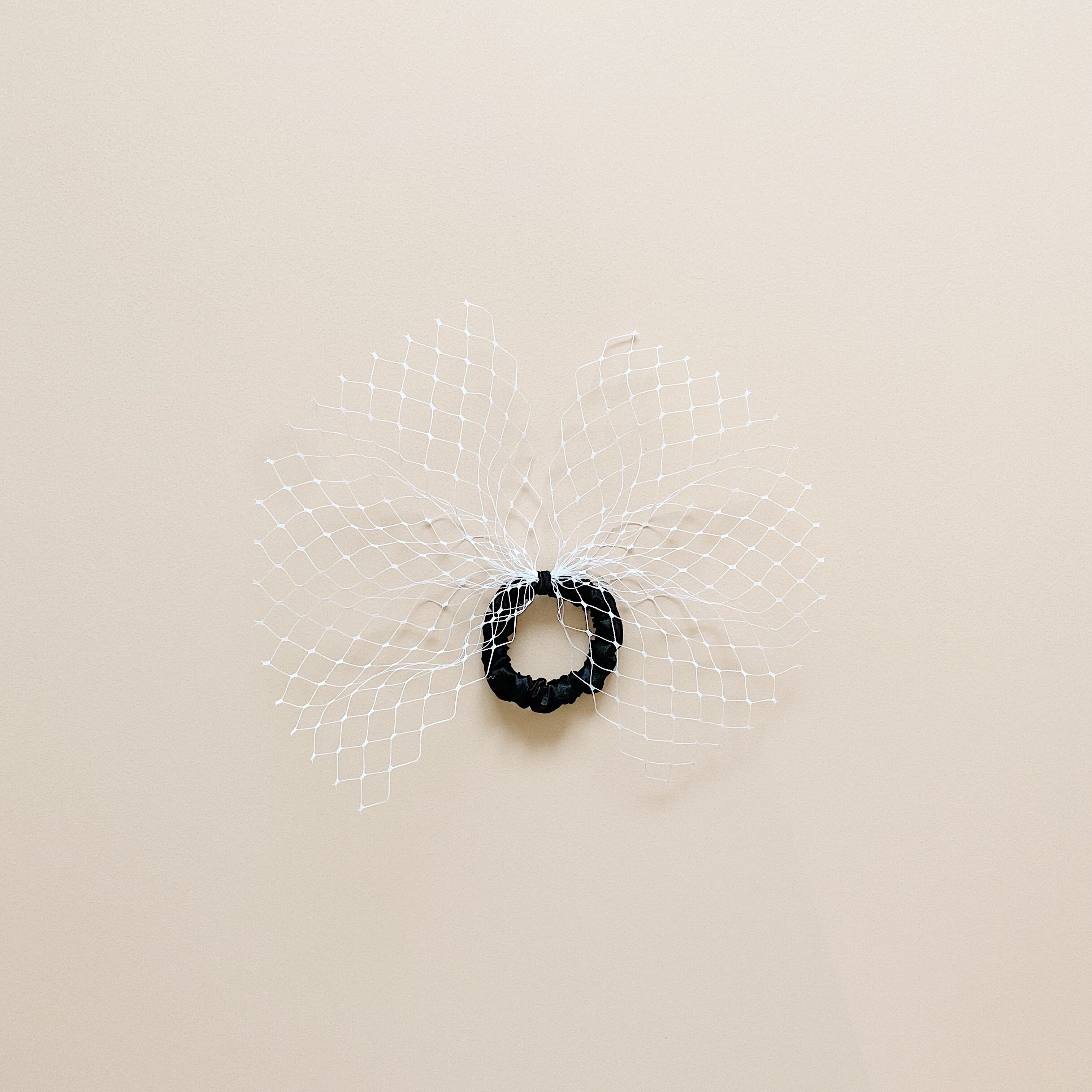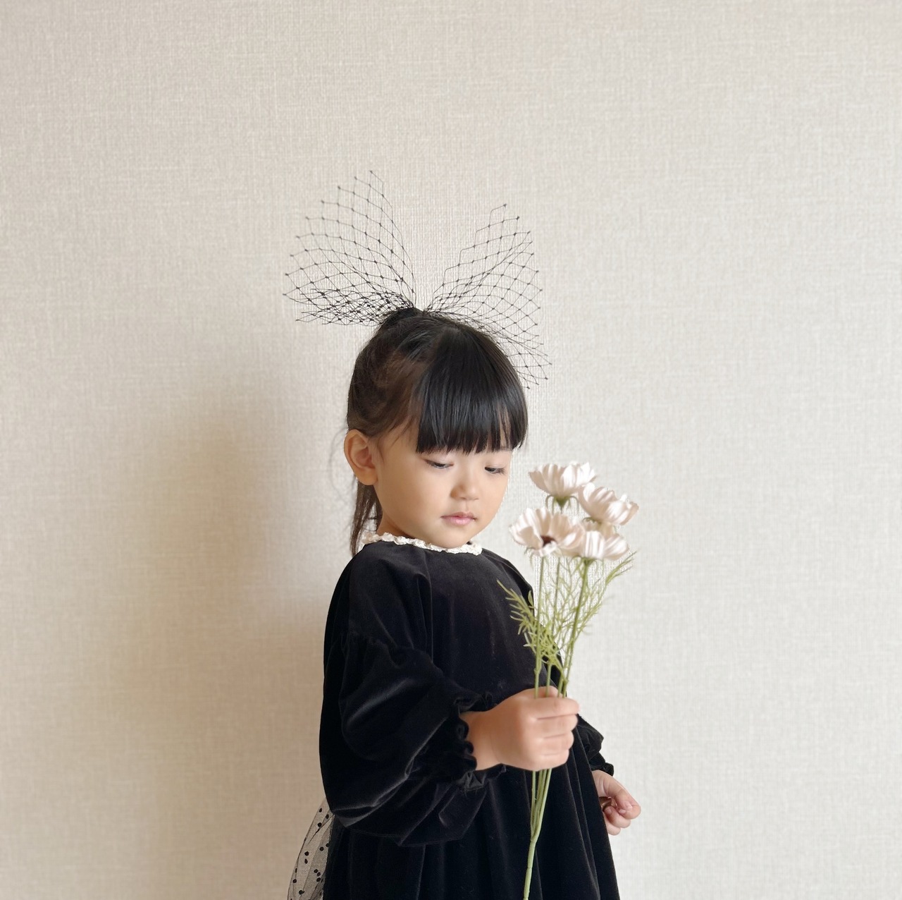 リボン部分のチュールは張りがあり、そのまま伸ばしたり、ピンなどで髪に固定してお好みの形にしても。