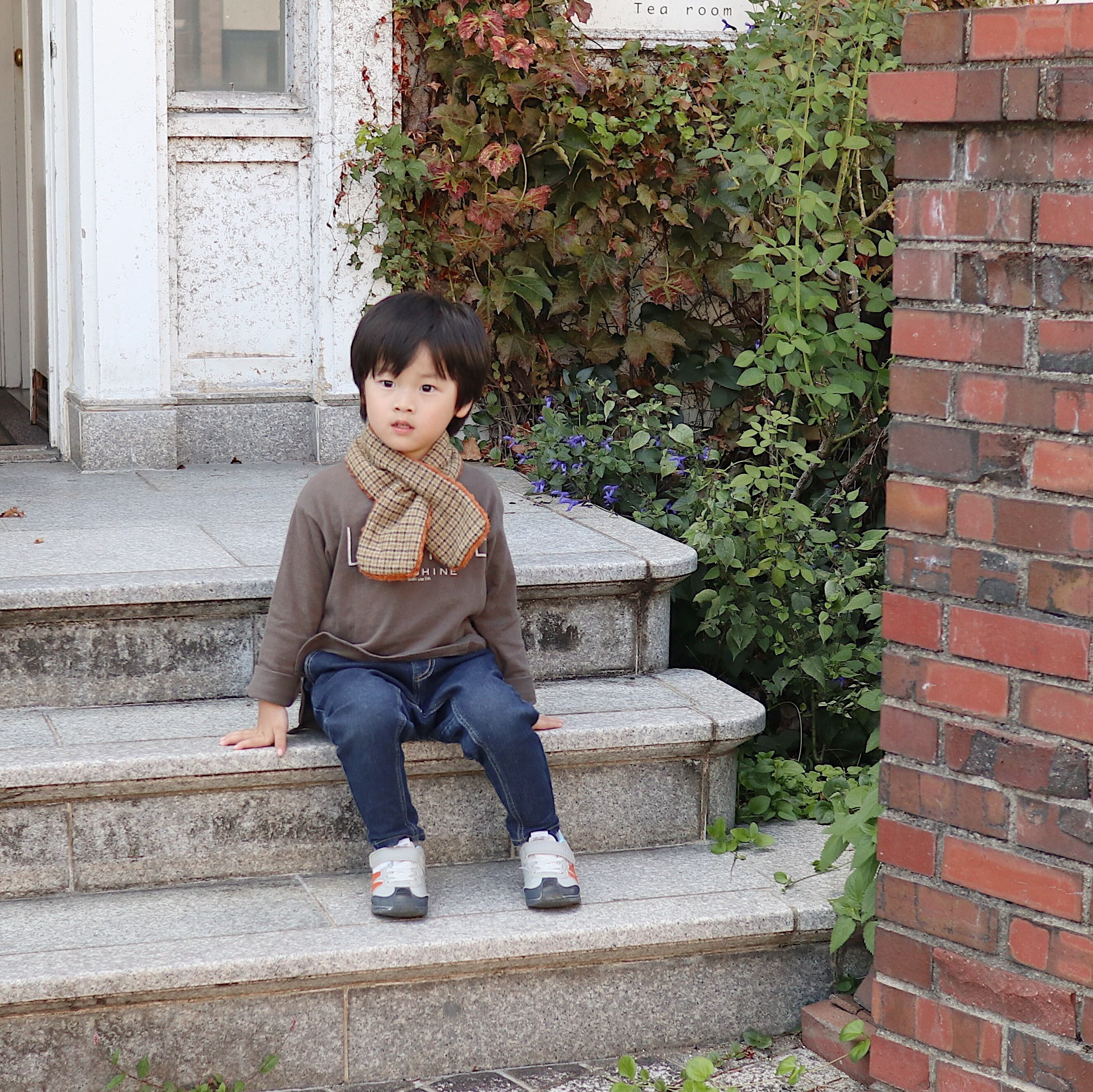 クラシカルなオータムカラーの子供用ネックウォーマー。