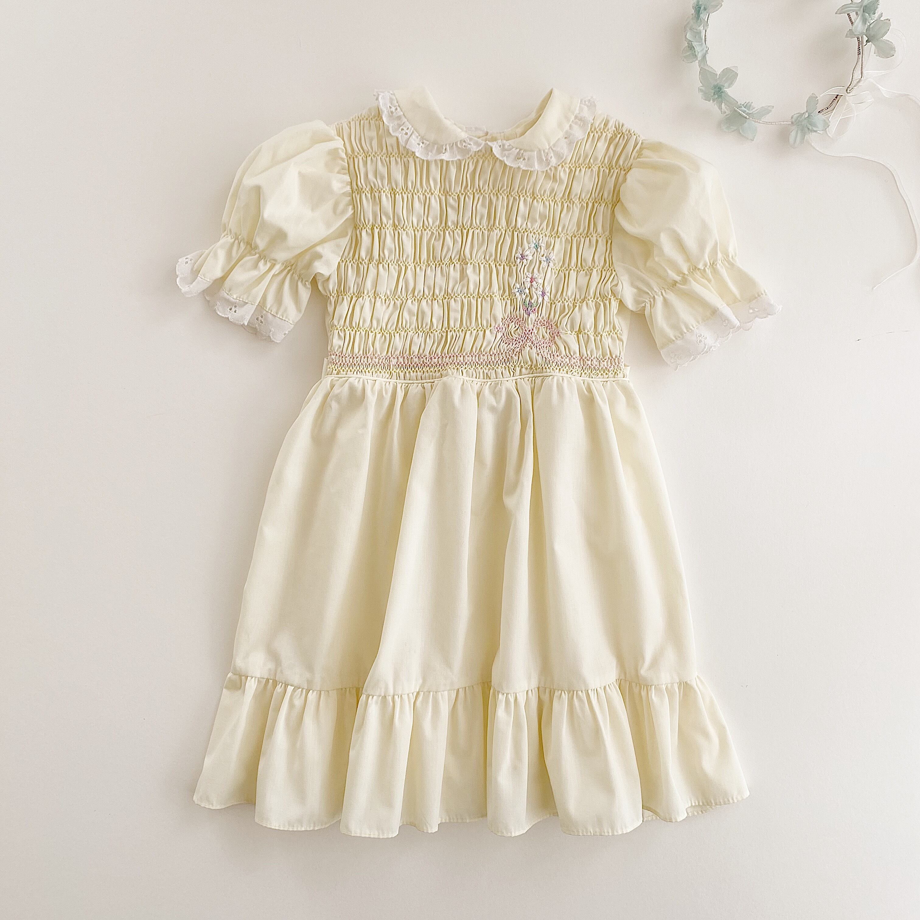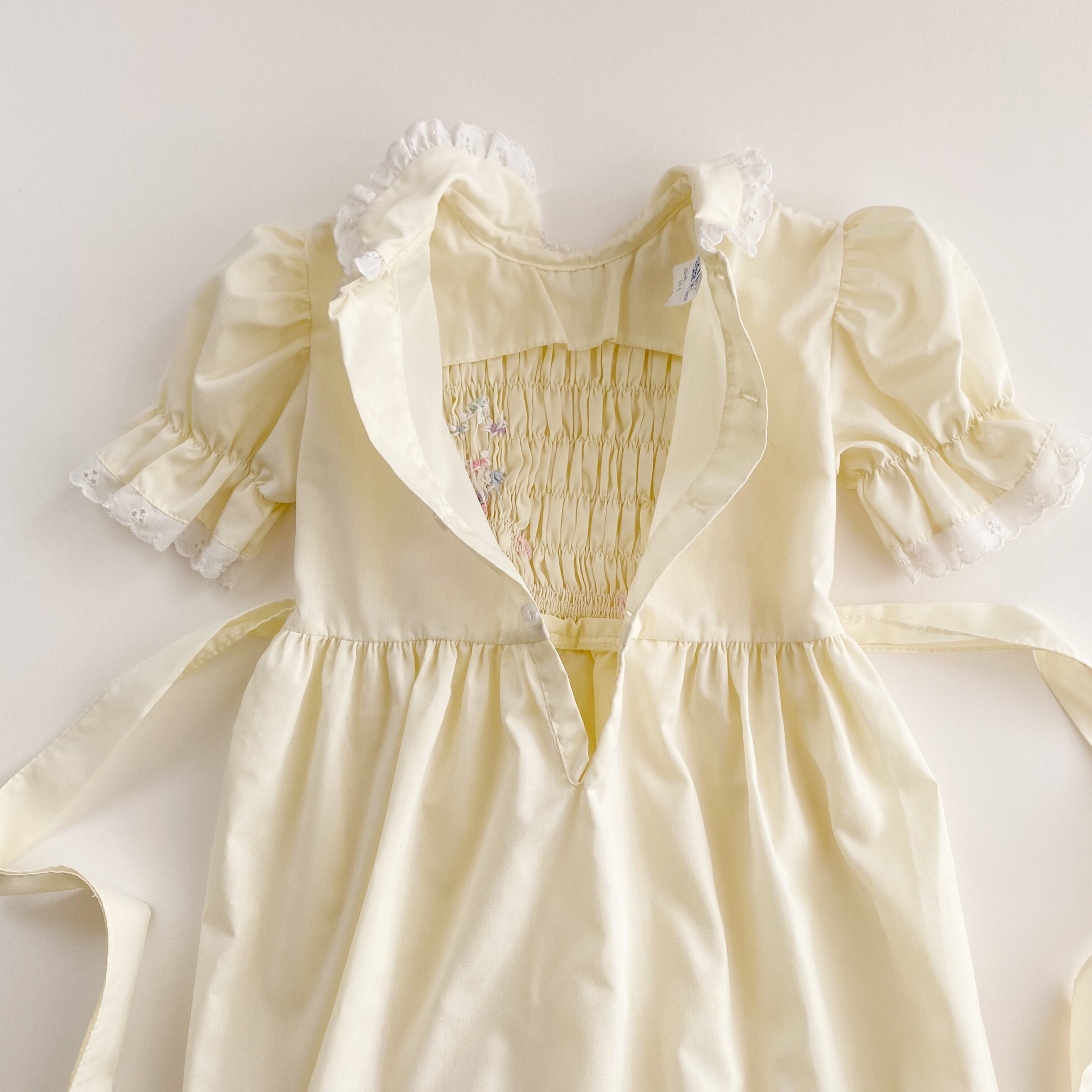 花束モチーフのスモッキング刺繍がとても可愛らしいヴィンテージワンピース。