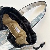 片面にはアクセントにゴールドパーツ、裏地上部はほんの少し光沢のある黒のサテンを使用し、上品でクラシカルな雰囲気です。
