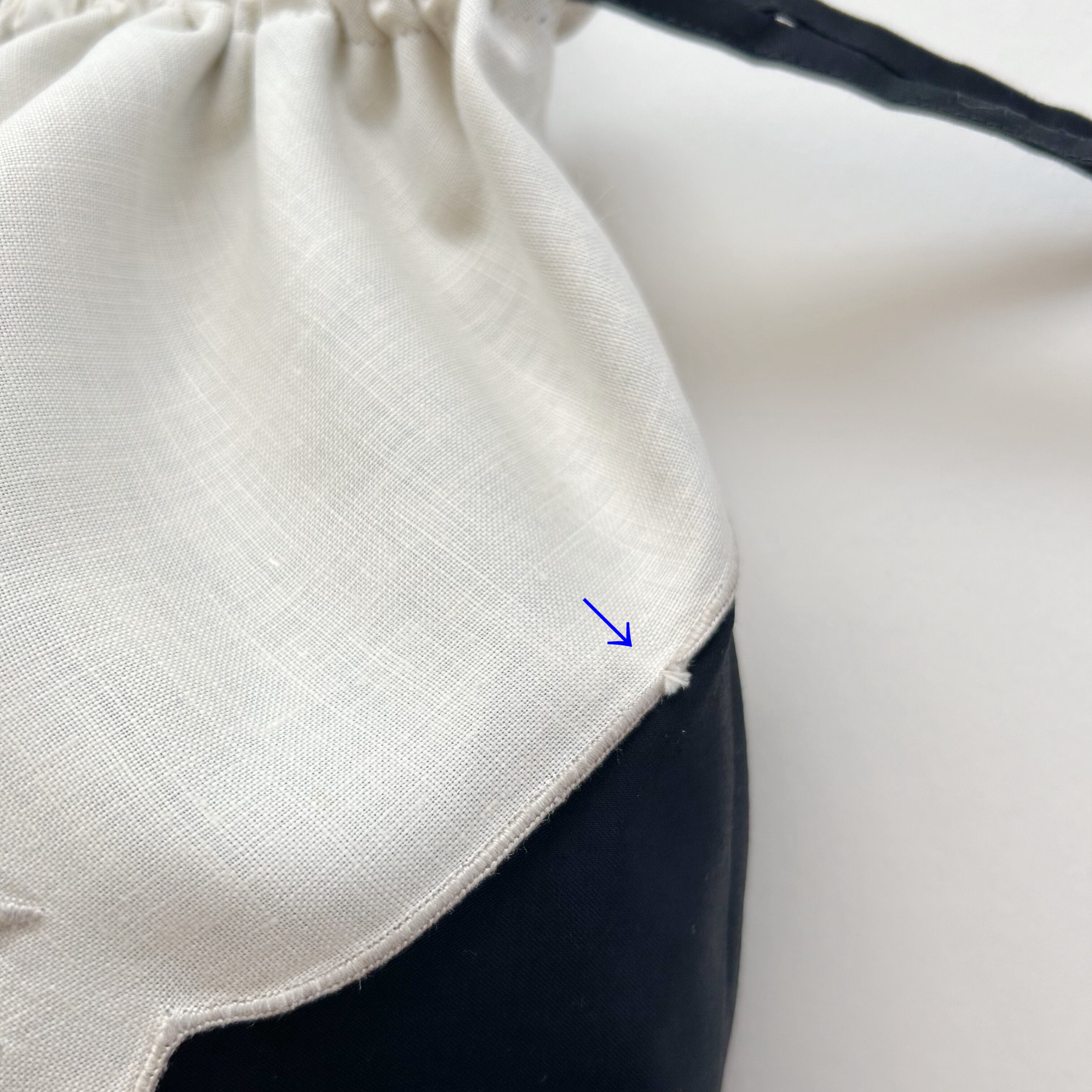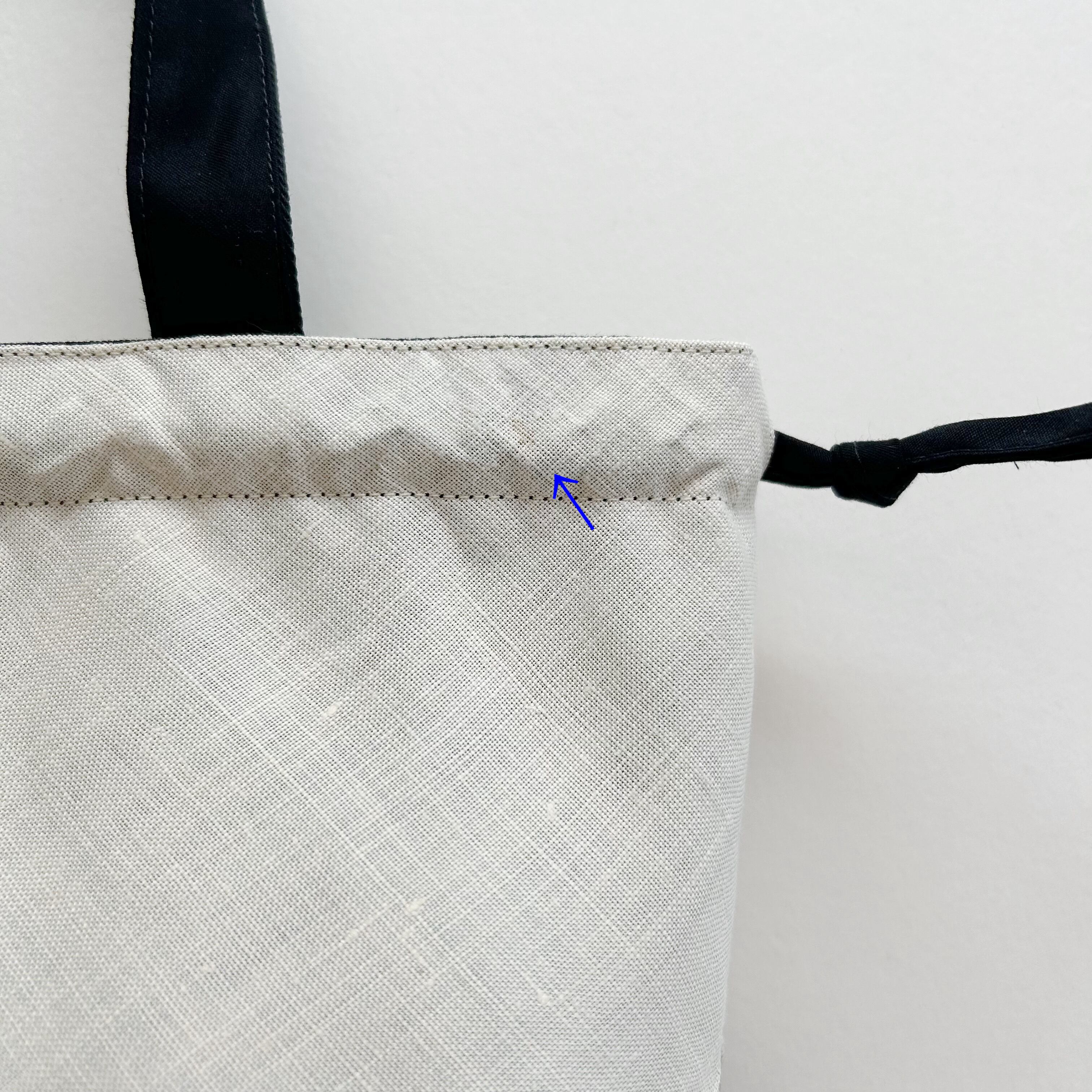 刺繍リネンに、ごく薄いシミ2か所とふちの乱れがあります。(画像9~11枚目)