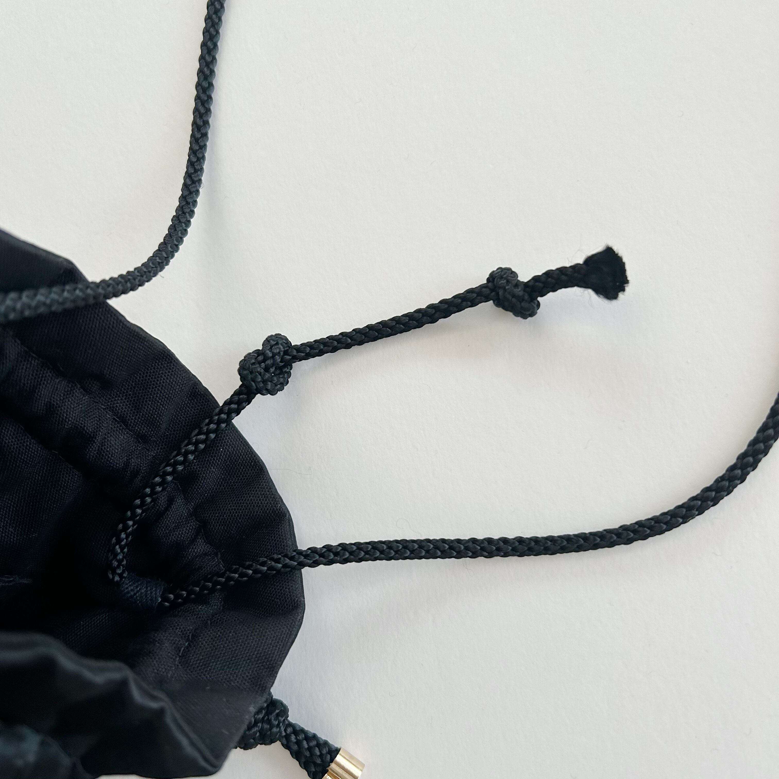 肩付近で結んで調節すると使用中に引っかけの恐れがありますので、バッグの中の紐通し部分で結び目を作り、余分な紐はカット、もしくはバッグの中に収納してご使用ください。