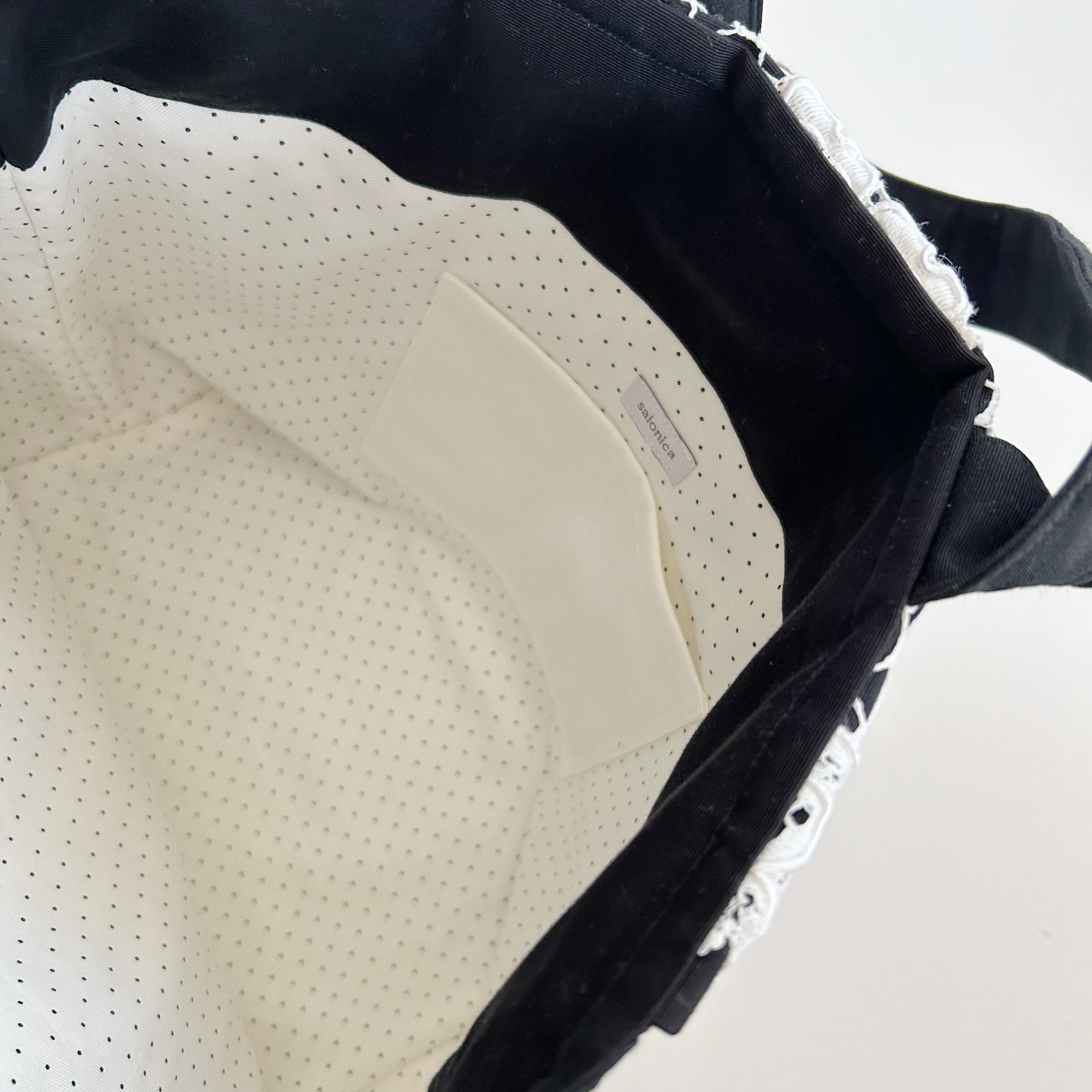 表地:黒ベースにホワイトのレース生地