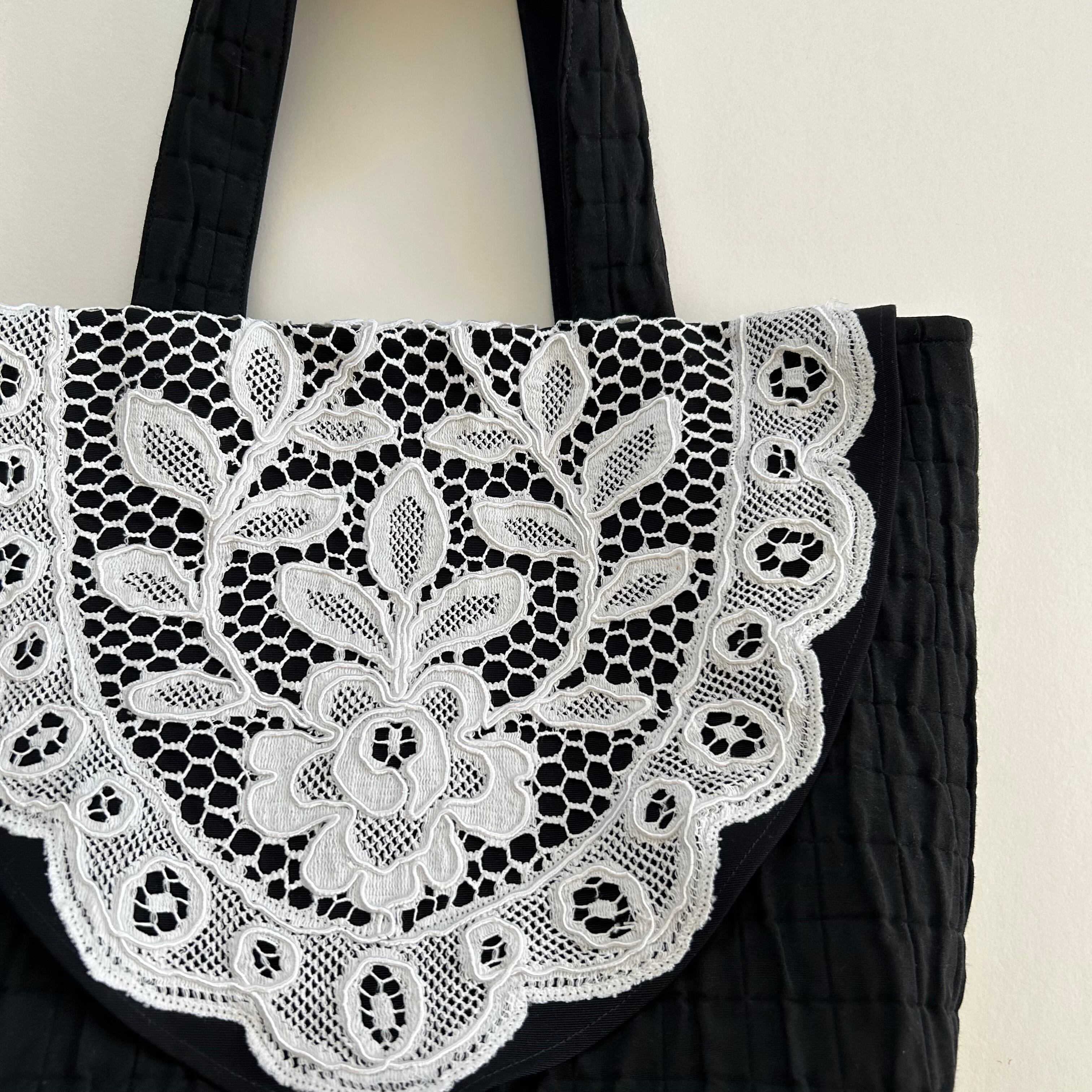 フランスの古いレース生地を使ったトートバッグ。
