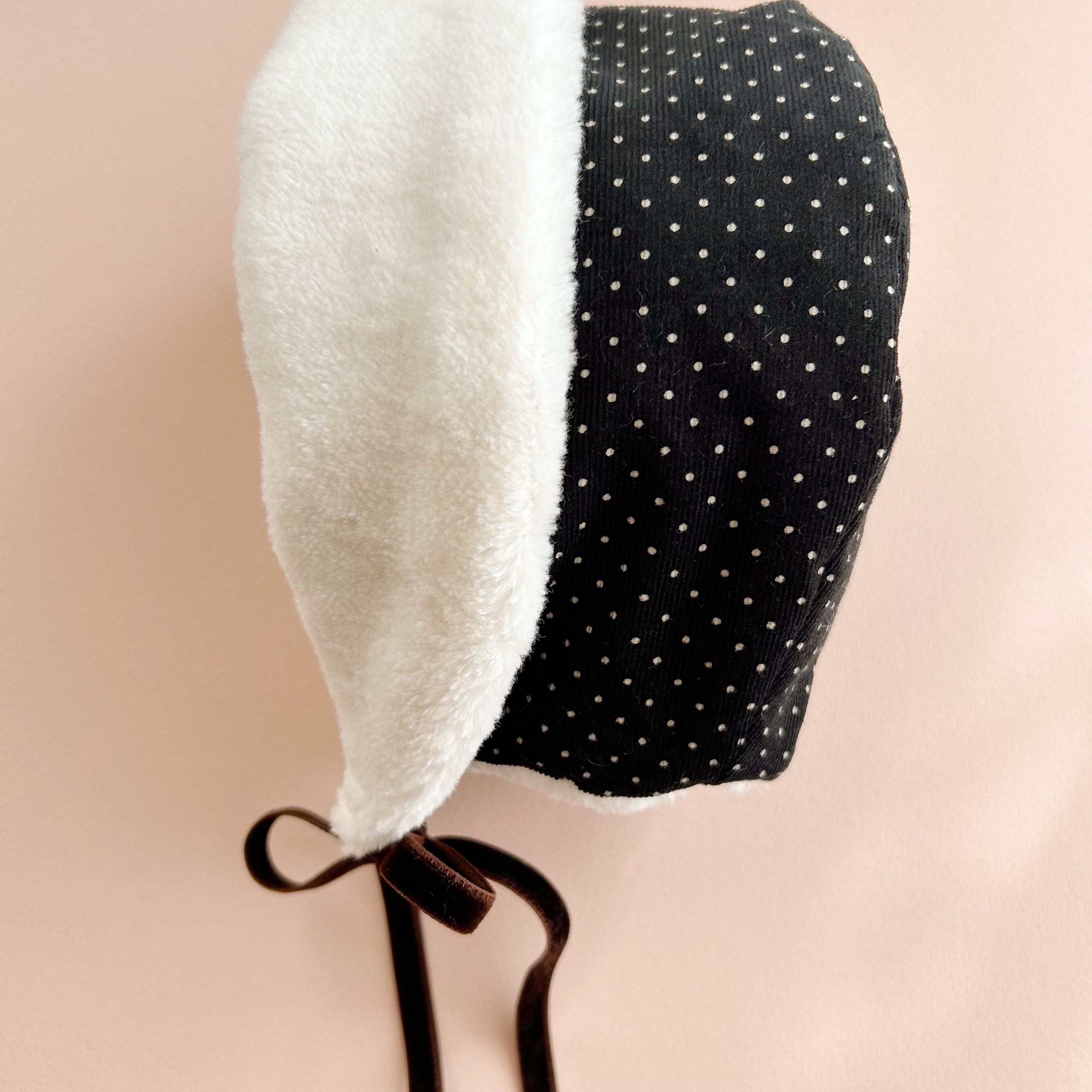 耳まですっぽりと覆い、冬のお出かけの防寒に活躍するボンネット。